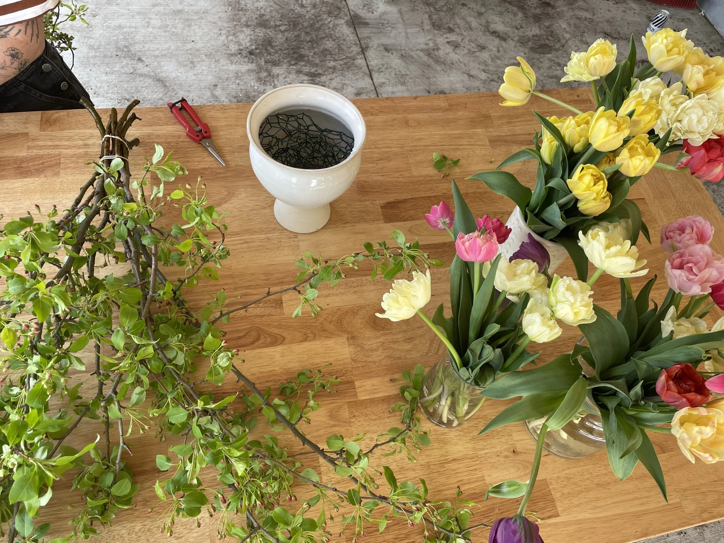 Not only will this keep them hydrated, it’s also an opportunity for you to trim them to fit your vase so everything looks nice and full. Flower snips are very handy for this task!